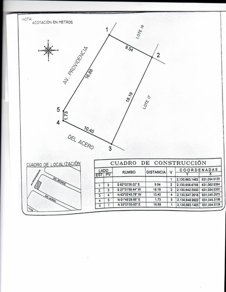Terreno en esquina de de 189.74 m2 con frente a la avenida de 18.73 metros