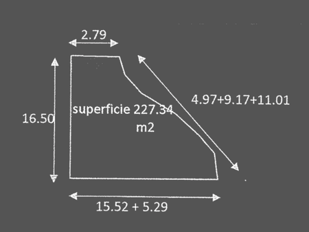 El lote presenta una forma irregular (tipo triangular) en esquina, lo que ofrece un potencial excepcional para un proyecto arquitectónico con gran visibilidad y posiblemente múltiples frentes comerciales.