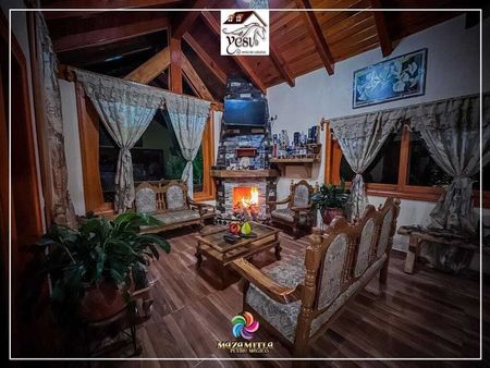 Cabaña en el sector de La media luna, terreno 600 mt2 construcción 320 mts, consta de 7 recamaras, 4 baños, sala comedor, chimenea, terraza, estacionamiento para más de 6 vehículos, con hermosa vista, rodeado de naturaleza, cerca de Mazamitla pueblo mágico, lugares turísticos, deportes extremos, caminatas al aire libre, vida campestre en todo su esplendor.