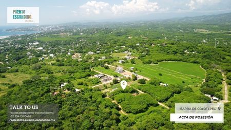Explora estos dos terrenos con vista al mar en una creciente zona residencial en Barra de Colotepec, cerca de Santa María Colotepec, en Puerto Escondido. Cada terreno mide 300 m² (15 x 20 metros) y está ubicado en una nueva zona residencial con hermosas casas cercanas. Situado por encima de La Barra, colindando con la colonia Emiliano Zapata, esta ubicación ofrece una vista panorámica al mar y está a corta distancia del río.