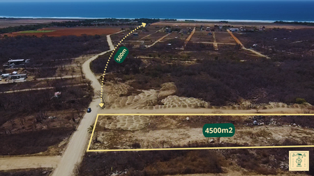 Terreno de muy buen tamaño con excelente vista y a tan solo unos pasos del mar (menos de 1km) en Playa Tierra Blanca.