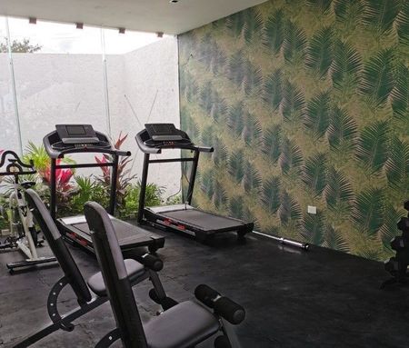 - Gym con caminadoras, mancuerdas y bicicletas.