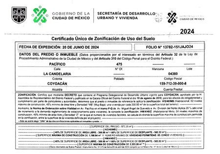 Uso de Suelo: HM/4/40/ZProyecto con 39 viviendas desde 40 m2 hasta 60 m2Predio con Manifestación de Construcción