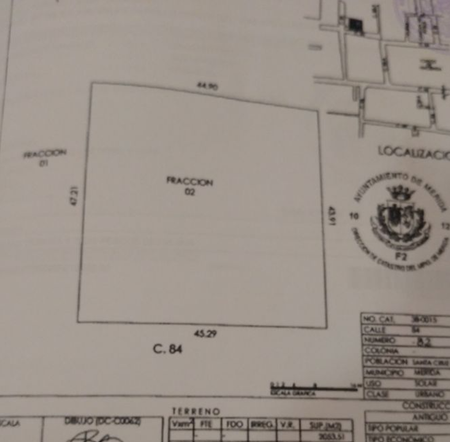 Terreno bardeado de 2,053m con un frente de 45m y fondo de 47m, ubicado en Sta Cruz Palomeque Mérida.