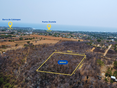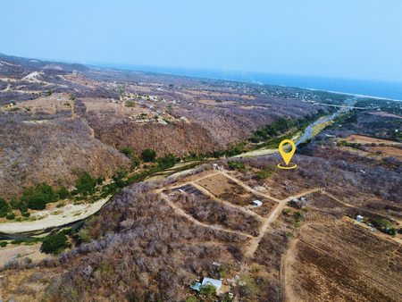 Terreno de buen tamaño y con una vista espectacular 360° que da a las montañas, al río de Colotepec y a las playas de La Barra, Punta, Tamarindos y Zicatela.