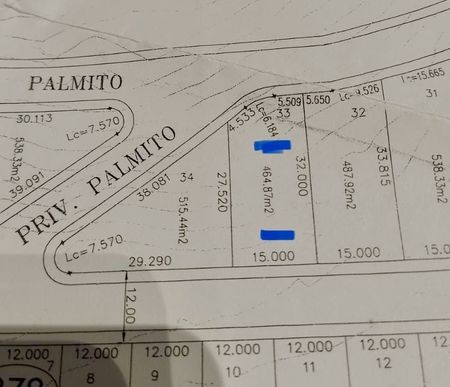 Terreno descendente en Palmares Residencial, fraccionamiento privado con caseta de seguridad, con accesos rápidos a Carretera Nacional, a 5 minutos de Plaza Serena.