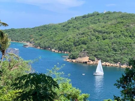 Excelente terreno en venta, 2,285 m2, con 40 metros cuadrados frente al mar, entrada por dos calles, con maravillosa vista vista a la Roqueta, en una zona privilegiada con posibilidad de construir muelle propio. Hermosa casa para remodelar.