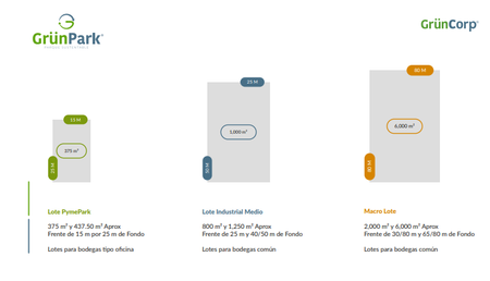 Lotes Pymes: Desde 250 m2 a 600 m2.