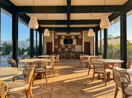- Terraza techada con bar y baños