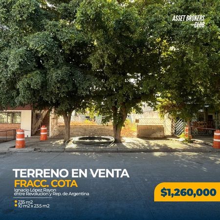 Terreno en Venta Fraccionamiento Cota235 m210 m2 x 23.5 m2Ignacio Lopez Rayon entre Revolucion y Rep. de Argentina $1,260,000