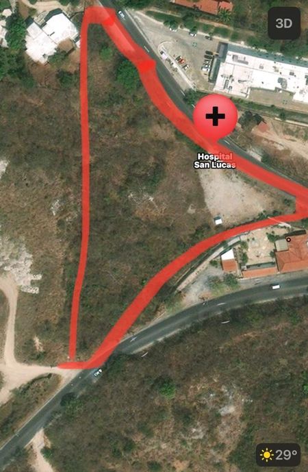 El terreno de 12,517 m2 está perfectamente ubicado para desarrollo de casa habitación, bodegas o situar alguna cadena de comercios ya que se encuentra en contraesquina del Hostpital San Lucas, también dispone de todos los servicios, tales como supermercados, cafeterías, escuelas, transporte publico.