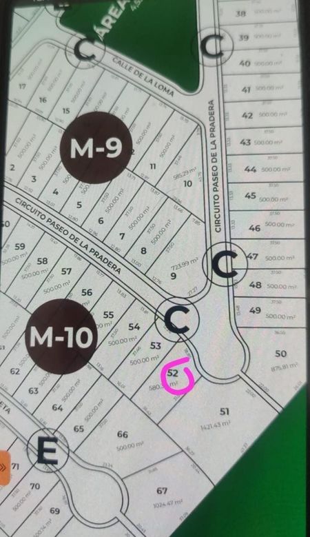 Terreno de OPORTUNIDAD EN VENTA en Residencial Vista Cañada. Circuito Paseo de la Pradera Lote M-10 Lote 52. 580 M2. $3,000/M2.