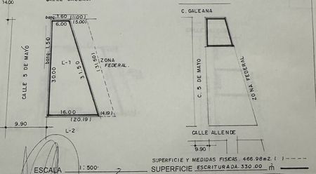 1.-dos terrenos frente al foro boca son Uno es de 466.98 m2Y el otro es de 464.49 m2