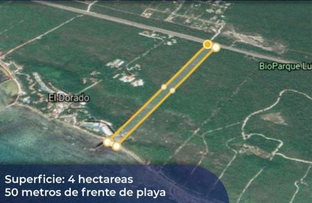 Terreno con 50 metros de playa y 50 metros de carretera en Riviera Maya, con un total de 4 hectareas.