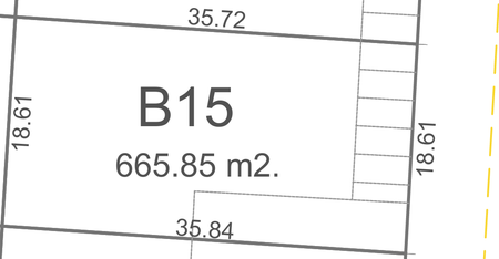 Dimensiones: 18.61 metros de frente por 35.84 metros de fondo.