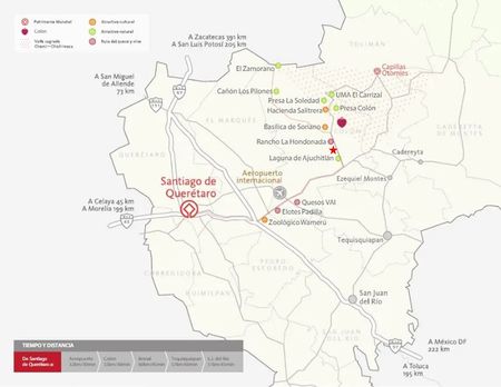 La excelente ubicación le da gran accesibilidad tanto a las ciudades de mayor importancia del estado (Querétaro y San Juan del Río), como a zonas industriales y turísticas importantes de la entidad (Bernal, Ezequiel Montes y Tequisquiapan).