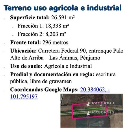 Terreno con más de 26,000 m² estratégicamente ubicado sobre la Carretera Libre La Piedad–Irapuato (Federal 90), con dos frentes de 296 metros cada uno y acceso directo a ambos sentidos de circulación.