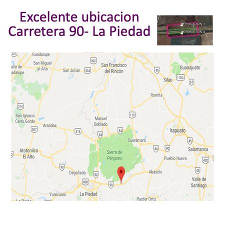 Terreno con más de 26,000 m² estratégicamente ubicado sobre la Carretera Libre La Piedad–Irapuato (Federal 90), con dos frentes de 296 metros cada uno y acceso directo a ambos sentidos de circulación.