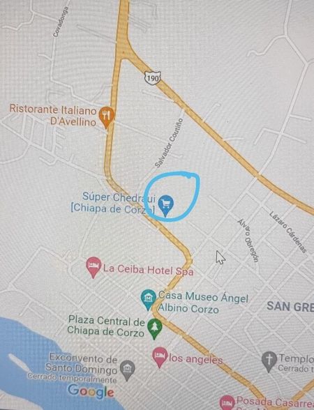 Magnifica oportunidad de adquirir un terreno justo a lado del Super Che, cerca del centro de Chiapas de Corzo. Es un terreno de uso de suelo mixto, maravilloso para hacer una plaza, un desarrollo casas.