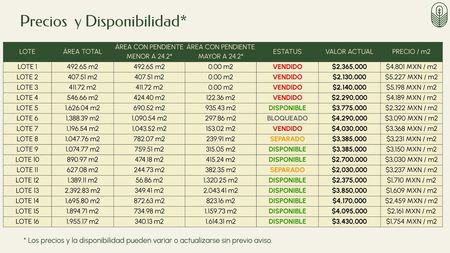 Terrenos desde 561 m2 hasta 3,503 m2.