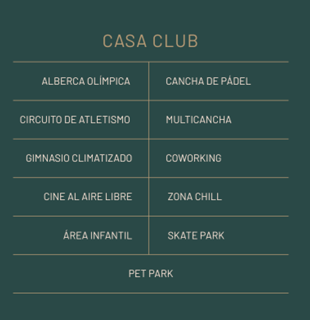 AMENIDADES CASA CLUB: