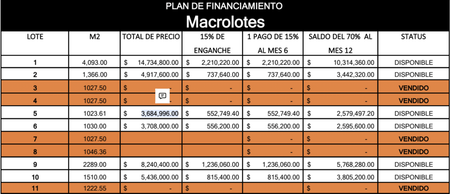 MACRO LOTES DISPONIBLES:
