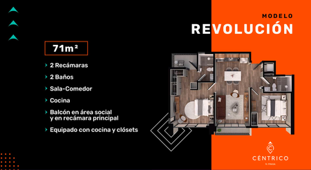 Este departamento puedes rentar una recámara y vivir en la otra, teniendo la posibilidad de tener una inversión al mismo tiempo y disfrutar de el.