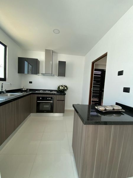 - La cocina cuenta con placas de granito en color negro y puertas de push, lo que la hace más práctica