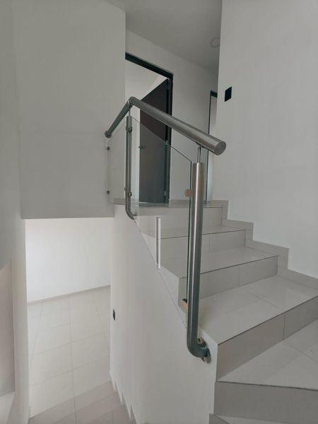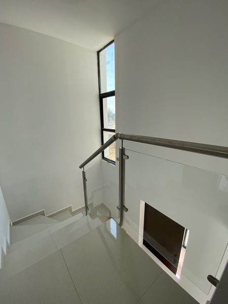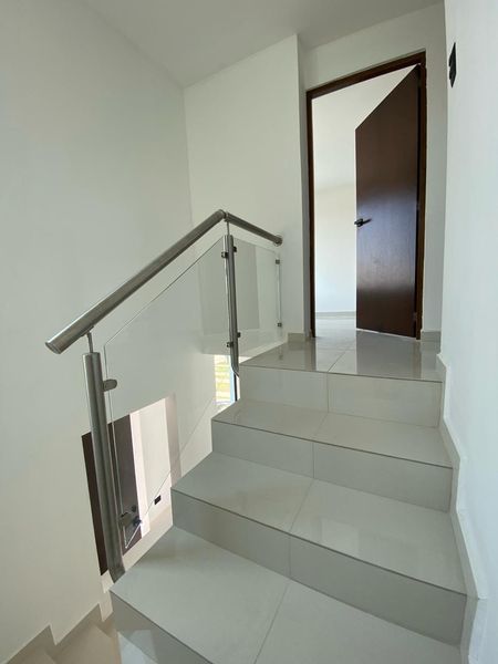 -Escaleras tienen un acabado de porcelanato y el barandal es de acero inoxidable y cristal templado