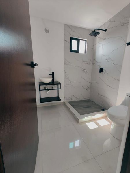 - Los accesorios del baño y ventanales tienen una terminación en color negro