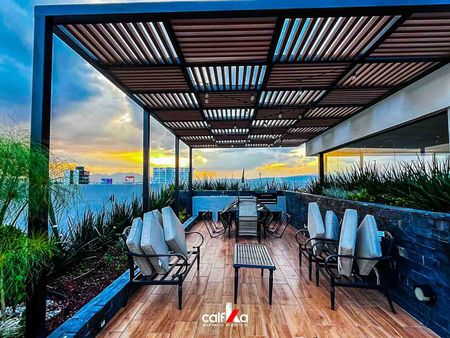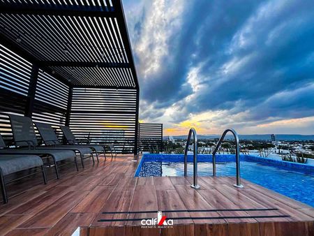 Vive el lujo en su máxima expresión y Enamórate de los elegantes acabados, con un Rooftop que ofrece un espacio exclusivo para relajarte y disfrutar de los mejores atardeceres de Aguascalientes. Conoce cada detalle de nuestras hermosas amenidades como alberca, área de asadores y un gimnasio que hacen de nuestros departamentos el lugar ideal para vivir cómodamente.