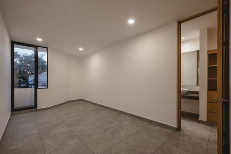 Recámara secundaria (3.70m de altura) con área de closet y baño completo.