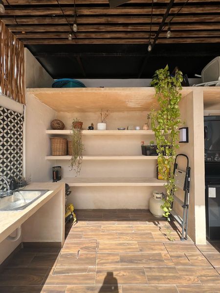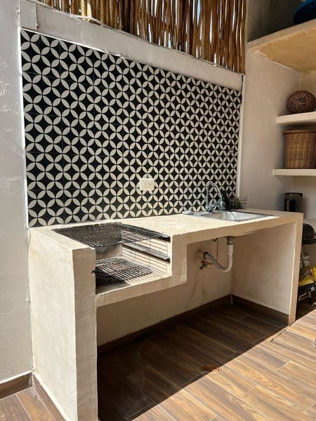• Área de asador techada con ventilador y luces, ideal para convivencias