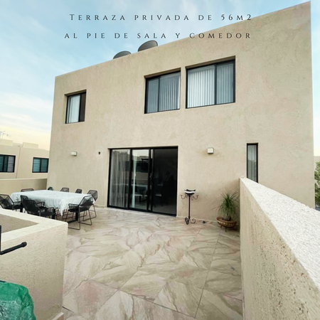 Amplia terraza privada al pie de sala y comedor de 57.56m2