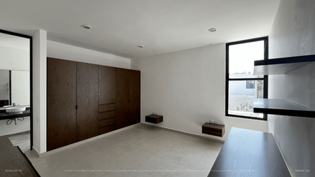 Recámara principal con closet vestidor y baño completo