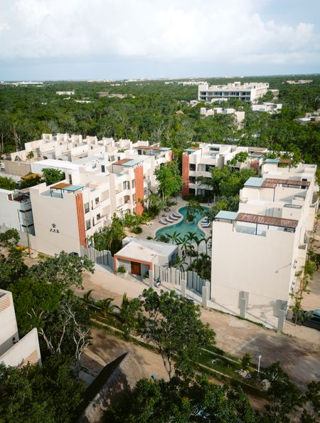 As a resident of Aak Tulum, you will enjoy premium amenities including a stunning communal pool surrounded by extensive green areas, a state-of-the-art gym with indoor and open-air sections, and a secure lobby with concierge service. The building offers private parking for residents.