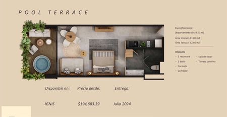 * TERRA Son 3 torres con 46 unidades, áreas privadas de swim ups y alberca cenote común. (Entrega Dic 2024)