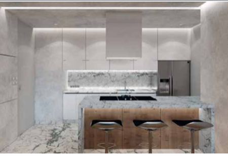 Mármol en baños y cocina Madera de ingeniería
