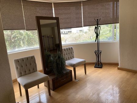 Vive en un amplio y seguro departamento totalmente amoblado y equipado de 362m2 dentro de Lomas Country Club, elevador al departamento con recibidor, oficina, baño de visitas, amplia e iluminada sala comedor, 3 recámaras con baño y vestidor cada una, la recámara principal con tina y regadera, family room, cocina equipada con amplia alacena, bar, cuarto de servicio con baño y vestidor, lavandería con caldera para calefacción, bodega interna y bodega externa de 9m2.
