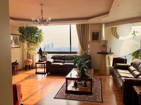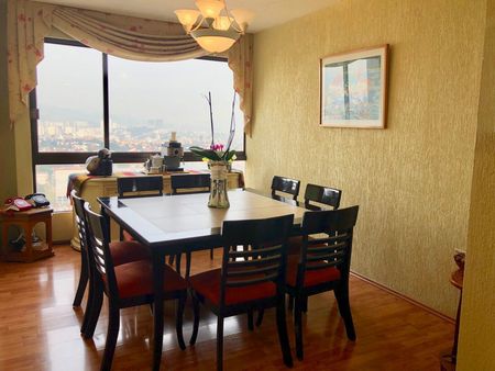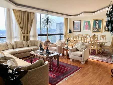 EXCELENTE DEPARTAMENTO CALIENTITO CON GRAN VISTA A SU ALREDEDOR, SALA Y COMEDOR, BAÑO DE VISITAS, FAMILY ROOM, CLOSETS DE VISITAS, DE BLANCOS, DESAYUNADOR, 4 RECAMARAS DONDE DOS COMPARTEN BAÑO O 3 RECAMARAS CON BAÑO Y ESTUDIO, 3 CON VESTIDOR , JACUZZI, COCINA INTEGRAL GRANDE CON ISLA Y DOBLE DESPENZA, AREA DE LAVADO Y CUARTO DE SERVICIO CON CLOSET Y BAÑO, BODEGA, 4 ESTACIONAMIENTOS COMPLETAMENTE INDEPENDIENTES, BODEGA DE 10MTS, . EN AREA COMUN: AMPLIOS JARDINES CON JUEGOS Y MESAS, CANCHA DE TENNIS, CANCHA DE PADEL, AREA DE MASCOTAS, PISTA, ALBERCA, SALON DE DISCIPLINAS, GYM, VAPOR Y SAUNA, SALON DE FIESTAS CON TERRAZA Y COCINA INDUSTRIAL, SALON MAS PEQUEÑO Y LUDOTECA, SON DOS TORRES UNICAMENTE Y 2 DEPTOS X PISO, CUOTA DE MANTENIMIENTO EN 10,000.