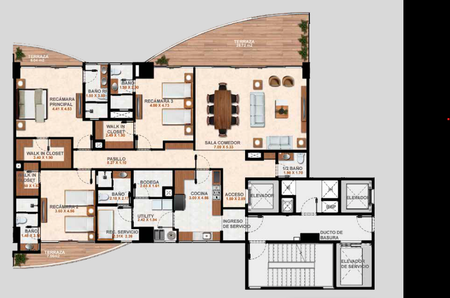 ¡Bienvenido a tu nuevo hogar en esta exclusiva zona residencial! Este espacioso departamento te ofrece una experiencia de vida única con todas las comodidades que necesitas. Al entrar, serás recibido por un medio baño para visitas, seguido de un amplio espacio para sala y comedor donde podrás relajarte y recibir a tus invitados. La terraza, con vistas panorámicas a los campos de golf, te brindará momentos inigualables de tranquilidad y contemplación. Este departamento mide trescientos dieciocho punto noventa y tres de los cuales doscientos once punto sesenta y nueve son de metros habitables y ciento siete punto veinticuatro metros cuadrados son de terrazas.