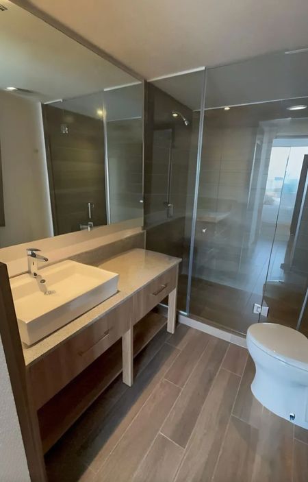 Cocina grande con opciones a personalizar a su estilo de vida. Recámara 1 funcionar como estudio o despacho, oficina, cine, gimnasio, vestidor o lo que tú quieras. Con baño completo y de visitas, dos recámaras demás al fondo pueden ser recámaras principales, se abren a terrazas agradables. tienen maravillosa área de guardado, con impecables baños contemporáneos.