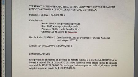 Terreno turístico de 96 hectáreas (960,000 m2) ubicado en Isla del Novillero, en Tecuala, en el Estado de Nayarit, dentro de la zona conocida como Isla del Novillero, Municipio de Tecuala.