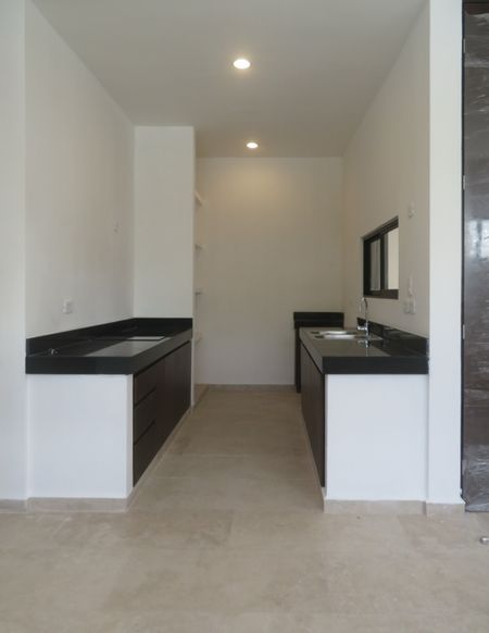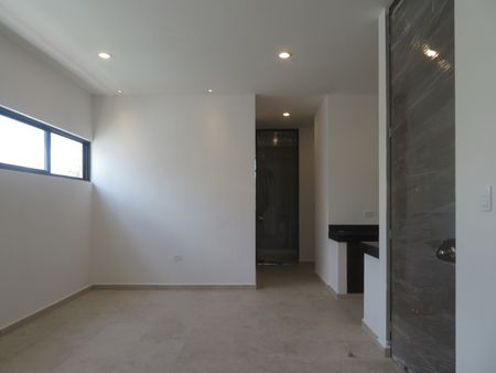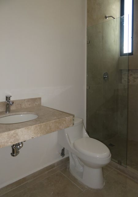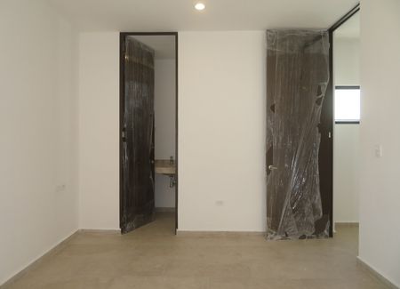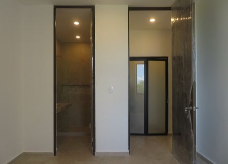 Recámara principal con espacio para closet de pared y baño con doble lavabo