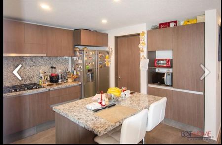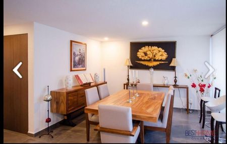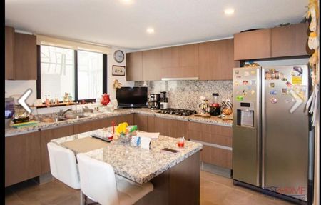 Venta de casa. Cuenta con tres recamaras. La recamara principal con baño y vestidor, las recamaras secundarias comparten baño, sala comedor separados, recibidor amplio, cocina con isla de granito, cuarto de lavado, patio trasero con cuarto de servicio con baño completo. Amplio roof garden con asador, bodega debajo de las escaleras, medio baño en planta baja. Estacionamiento para dos.