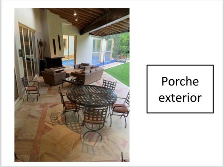 Porche con sala, comedor y chimenea
