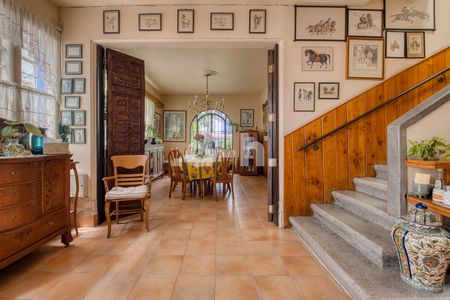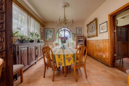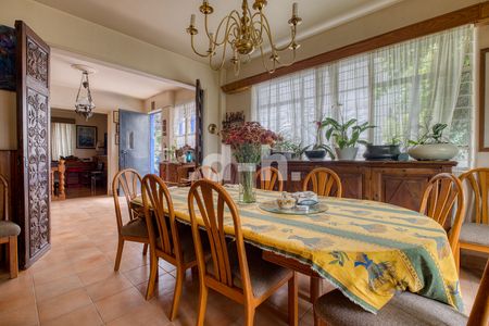 La casa principal está diseñada para la vida familiar, con cuatro recámaras, dos baños completos en planta alta y un medio baño en planta baja. Sus áreas sociales incluyen sala, comedor, antecomedor y cocina, además de garaje techado para un auto y espacio descubierto para tres más. También cuenta con cuarto de servicio con baño completo, área de lavado y planchado.