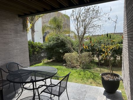 Terraza con asador y jardín trasero
