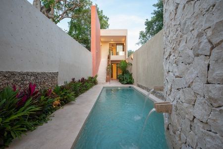 Esta residencia completamente restaurada y remodelada, ubicada entre el Barrio de La Ermita y el de Santiago, es una cautivadora fusión de historia y modernidad en el corazón del centro de Mérida.