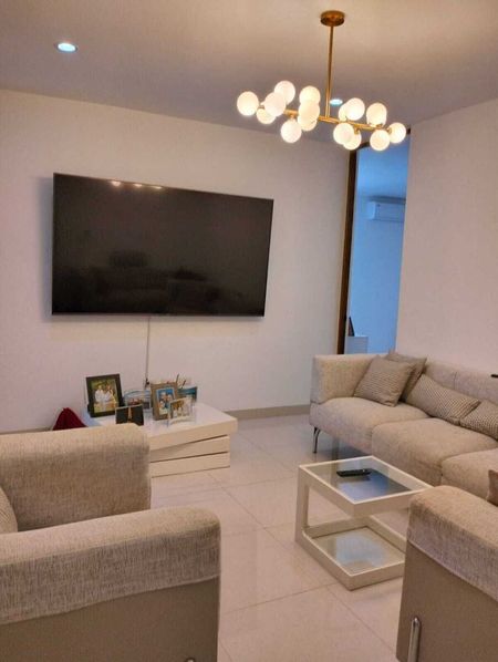 3 lámparas de lujos en recibidor, sala y comedor